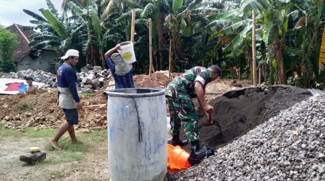 Babinsa Koramil 0827/11 Pasongsongan Bantu Warga Bangun Rumah di Sumenep