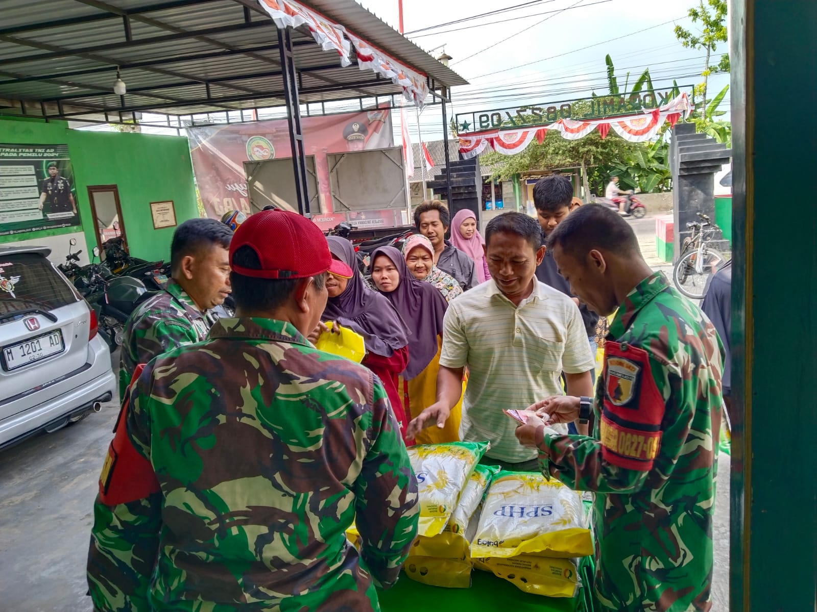 SUMENEP – Antusiasme masyarakat Kecamatan Pragaan, Kabupaten Sumenep, terlihat saat Koramil 0827/09 Pragaan menggelar penjualan beras Stabilisasi Pasokan dan Harga Pangan (SPHP). Sebanyak 129 sak beras dengan berat masing-masing 5 kilogram ludes terjual hanya dalam waktu 4 jam.