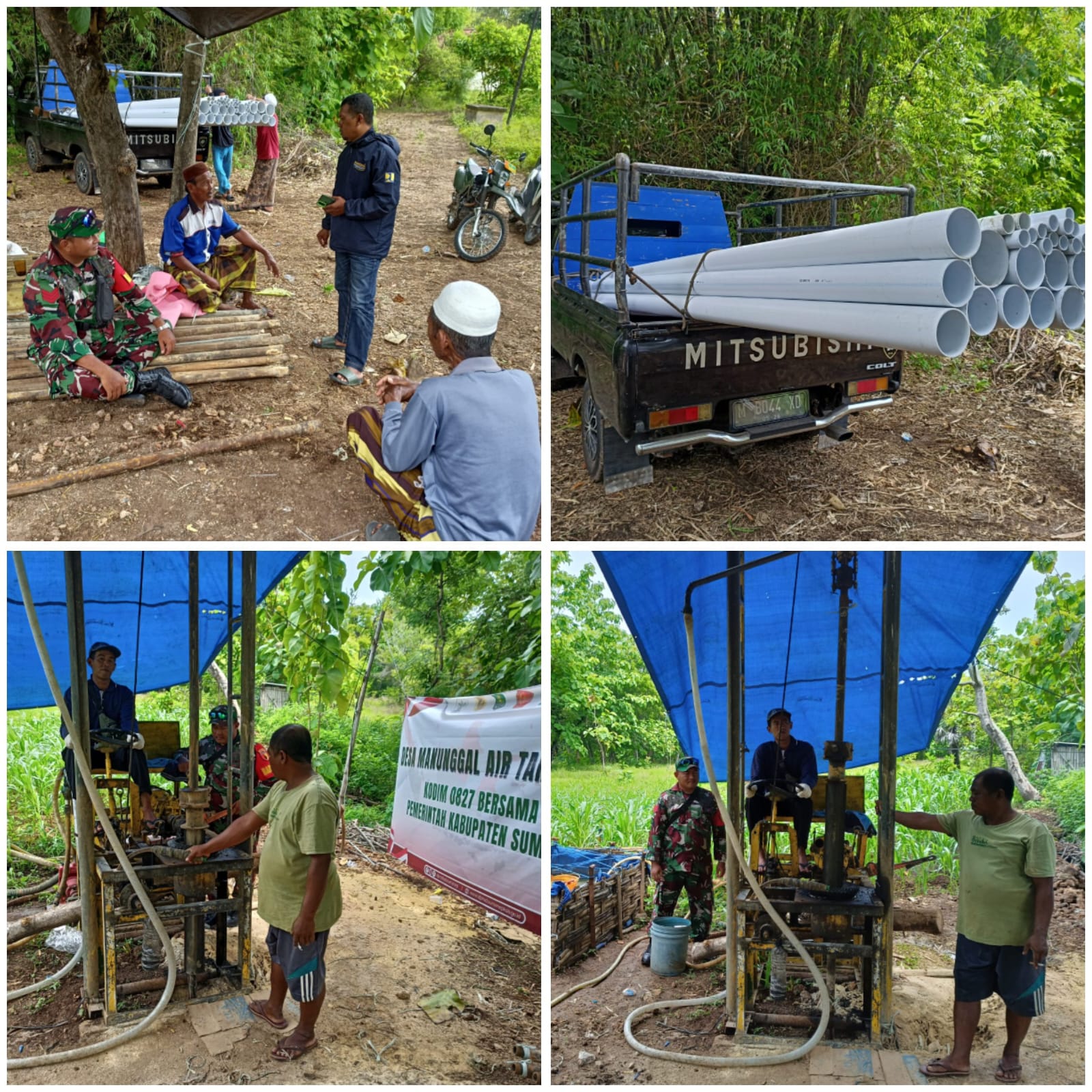 Kodim 0827/Sumenep bersama Pemerintah Kabupaten Sumenep melaksanakan pendampingan kegiatan pengeboran air bersih di Dusun Gunung Malang, Desa Kombang, Kecamatan Talango, Kabupaten Sumenep, Minggu (14/12/2025).