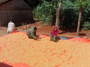 Babinsa Posramil Talango Koramil 0827/02 Kalianget Serda Andik mengatakan bahwa ia membantu ibu Sumiarti melakukan proses pengeringan hasil panen jagung secara tradisional, yakni dengan menjemurnya di bawah terik matahari.