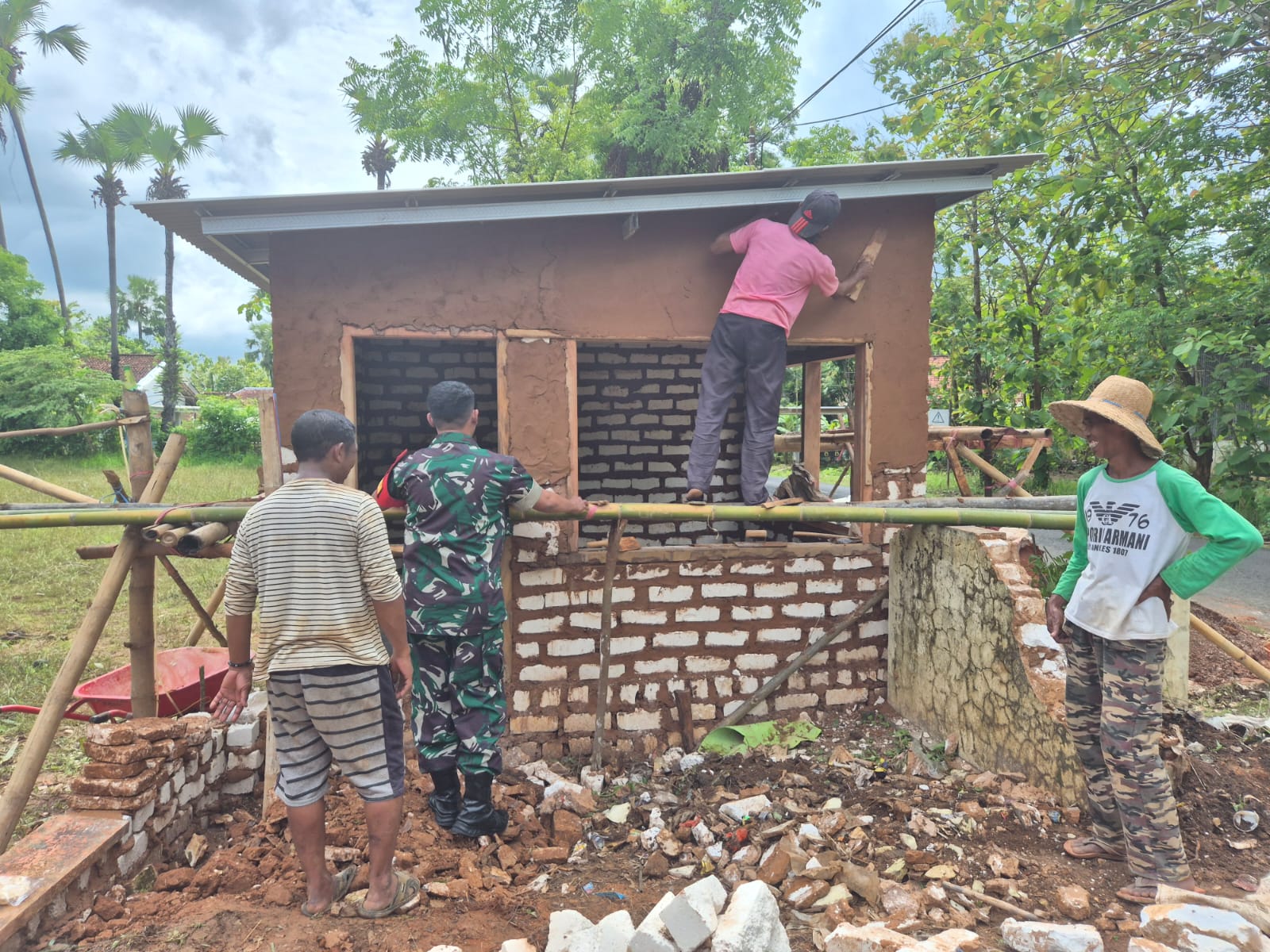 Warga yang ikut kerja bakti pun senang banget, apalagi warung yang dibangun bakal jadi tempat usaha salah satu warga setempat. Kehadiran Babinsa di tengah mereka bikin suasana makin hidup dan penuh semangat kebersamaan.