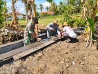 Sumenep, Jatim | suaranasionalnews.co.id – Babinsa Koramil 0827/06 Saronggi Serka M. Jakfar bersama warga gotong royong bangun saluran irigasi sepanjang 100 meter.
