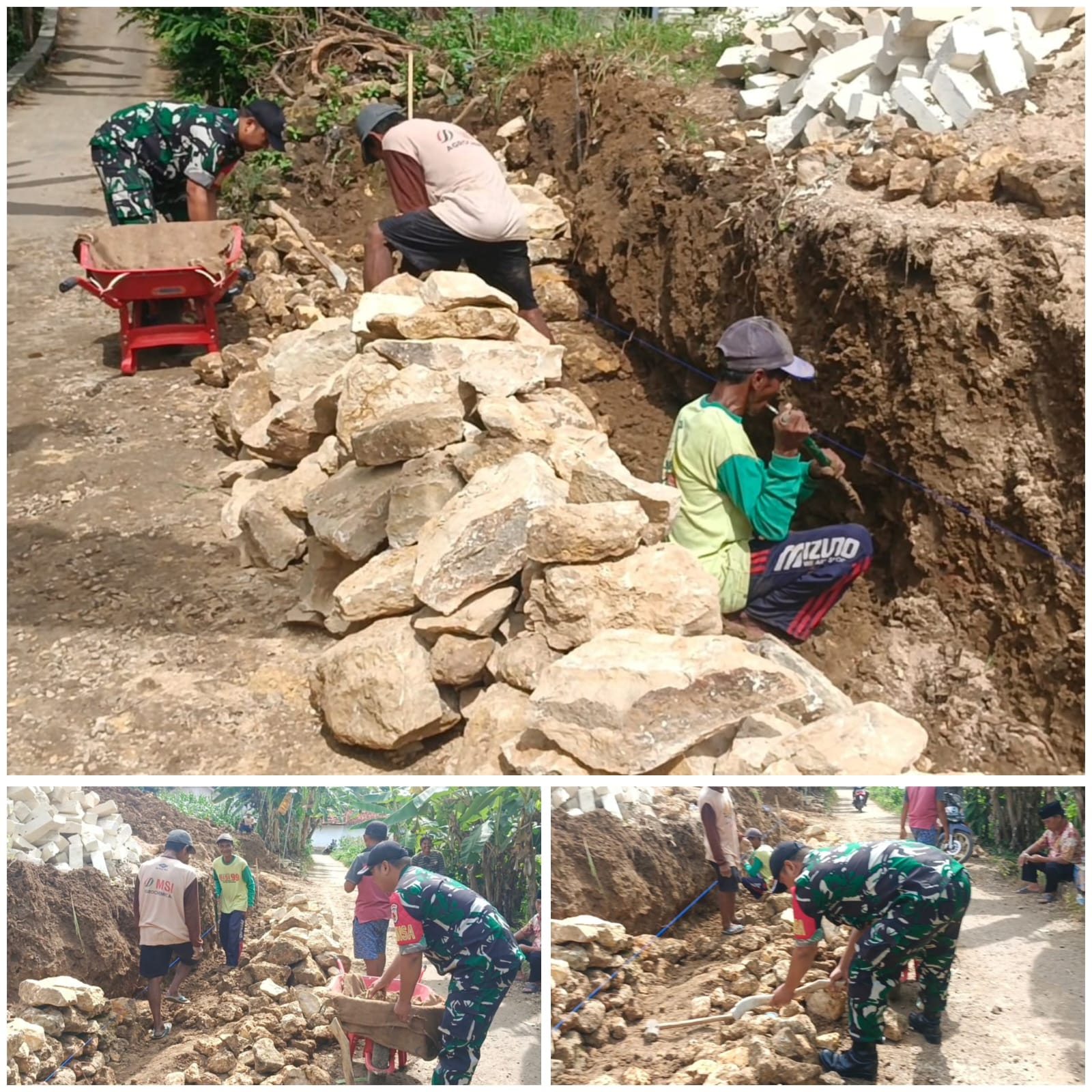 “Plengsengan ini berfungsi menahan tanah dan mengarahkan aliran air supaya tidak merusak lingkungan sekitar, terutama ketika curah hujan tinggi,” kata Kopda Rifai.