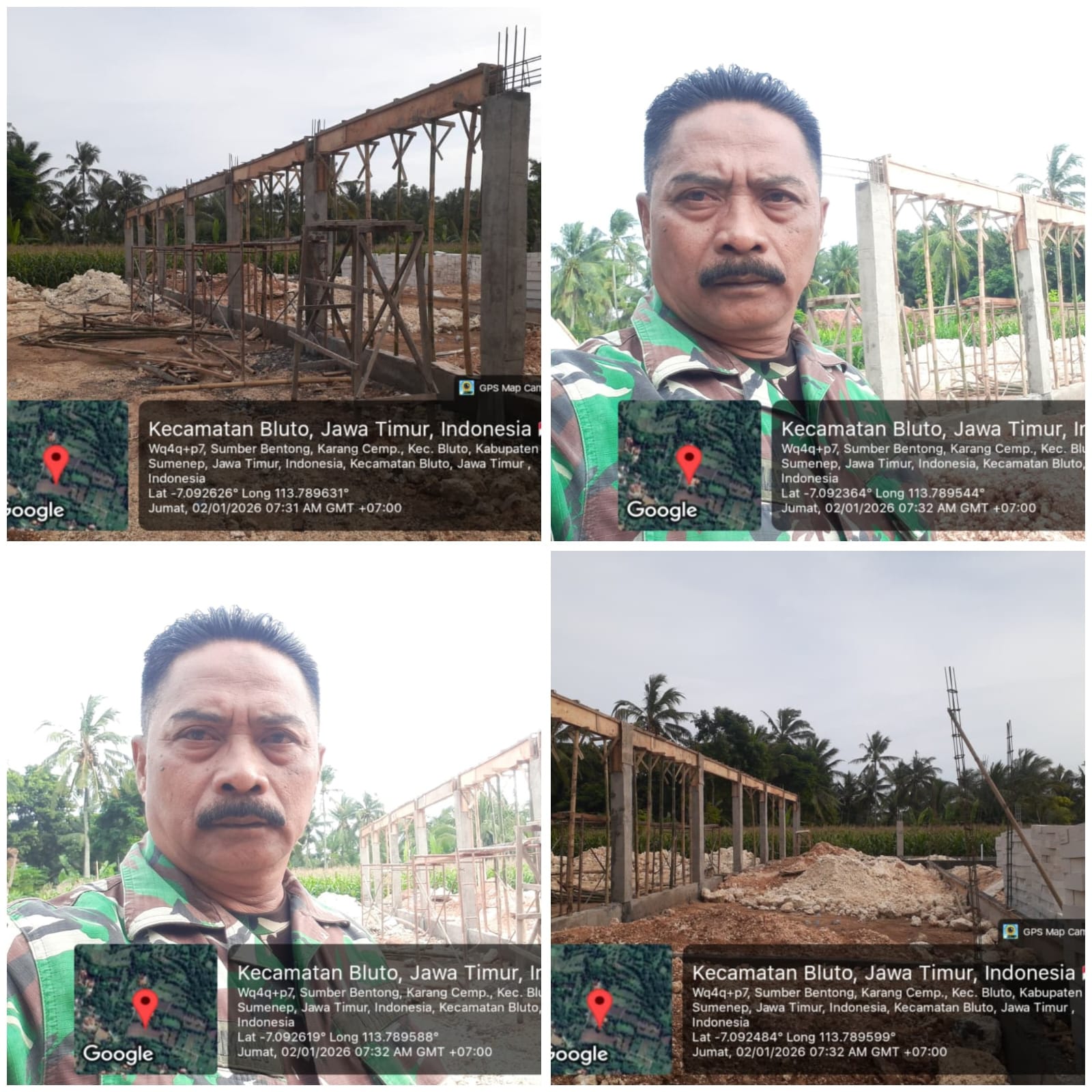 “Saat ini kami fokus mengawasi penentuan titik bangunan, dan kesesuaian jarak antar kolom. Struktur kolom beton yang mulai berdiri menjadi acuan utama sebelum dilakukan penggalian pondasi agar konstruksi nantinya benar-benar sesuai gambar rencana,” ujar Babinsa di lokasi.