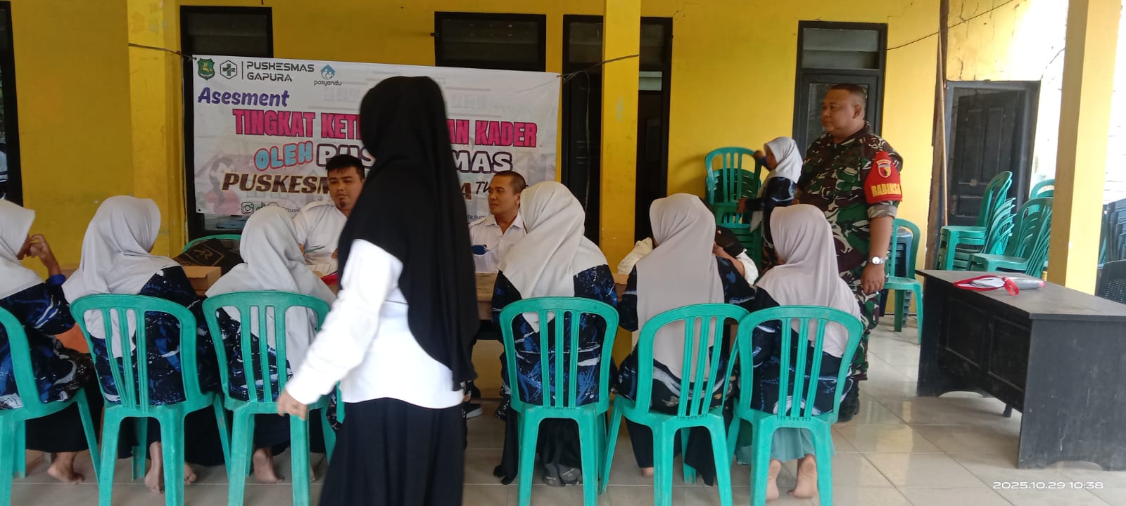 SUMENEP – Babinsa Desa Banjar Timur Koramil 16/Gapura Kodim 0827/Sumenep Kopka Hendry melaksanakan pendampingan kepada kader Puskesmas dalam kegiatan pelayanan kesehatan masyarakat yang berlangsung di Balai Desa Banjar Timur, Kecamatan Gapura, Kabupaten Sumenep. Minggu (2/11/2025).