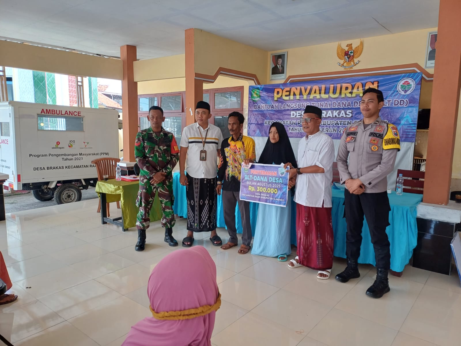 SUMENEP – Babinsa Koramil 21/Raas Kodim 0827/Sumenep Koptu Anton Dwi turut mendampingi pelaksanaan penyaluran Bantuan Langsung Tunai Dana Desa (BLT-DD) tahap III tahun 2025 yang berlangsung di Balai Desa Brakas, Kecamatan Raas, Kabupaten Sumenep. Kamis (23/10/2025).