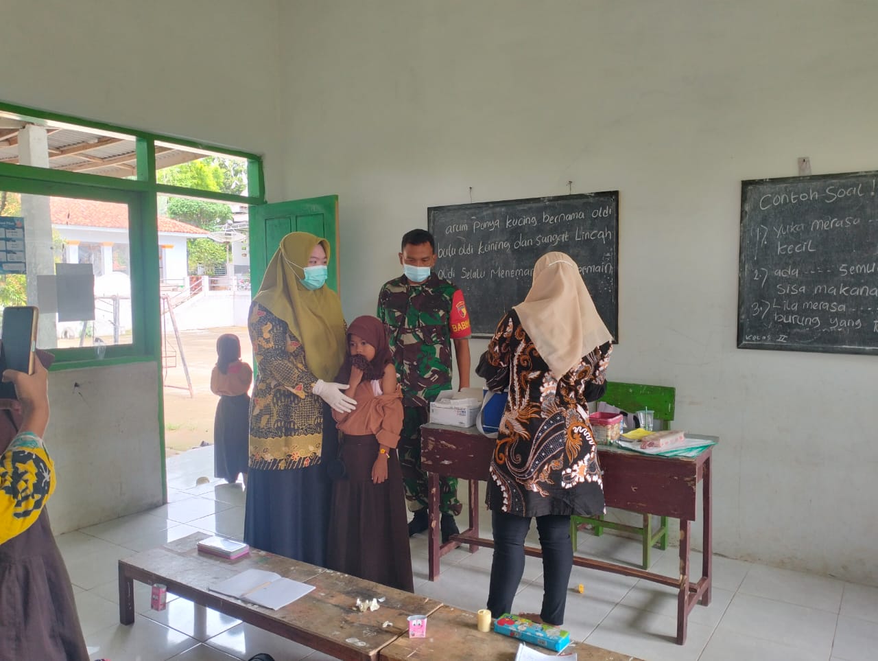 Dalam kegiatan tersebut, Koptu Ahmad Zaini membantu memastikan proses vaksinasi berjalan aman dan lancar, mulai dari pendataan siswa, pengaturan antrean, hingga memberikan pendampingan kepada tenaga medis di lapangan. Kehadiran Babinsa juga memberikan rasa nyaman kepada para siswa yang mengikuti vaksinasi.