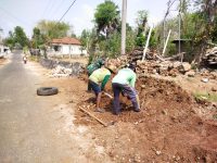 Sumenep, Jatim | suaranasionalnews.co.id – Babinsa Koramil 0727/04 Bluto Serda Dono bersama warga Desa Gilang, Kecamatan Bluto, Kabupaten Sumenep membangun plengsengan jalan.