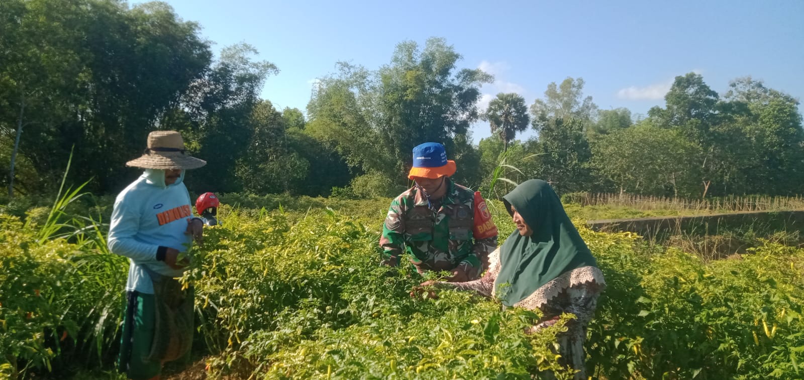 SUMENEP – Dalam upaya mendukung ketahanan pangan dan meningkatkan kesejahteraan petani, Babinsa Koramil 0827/12 Dasuk Sertu Adiyono turut membantu petani memanen cabai rawit di lahan pertanian milik warga di Desa Kecer, Kecamatan Dasuk, Kabupaten Sumenep, Minggu (03/08/2025).