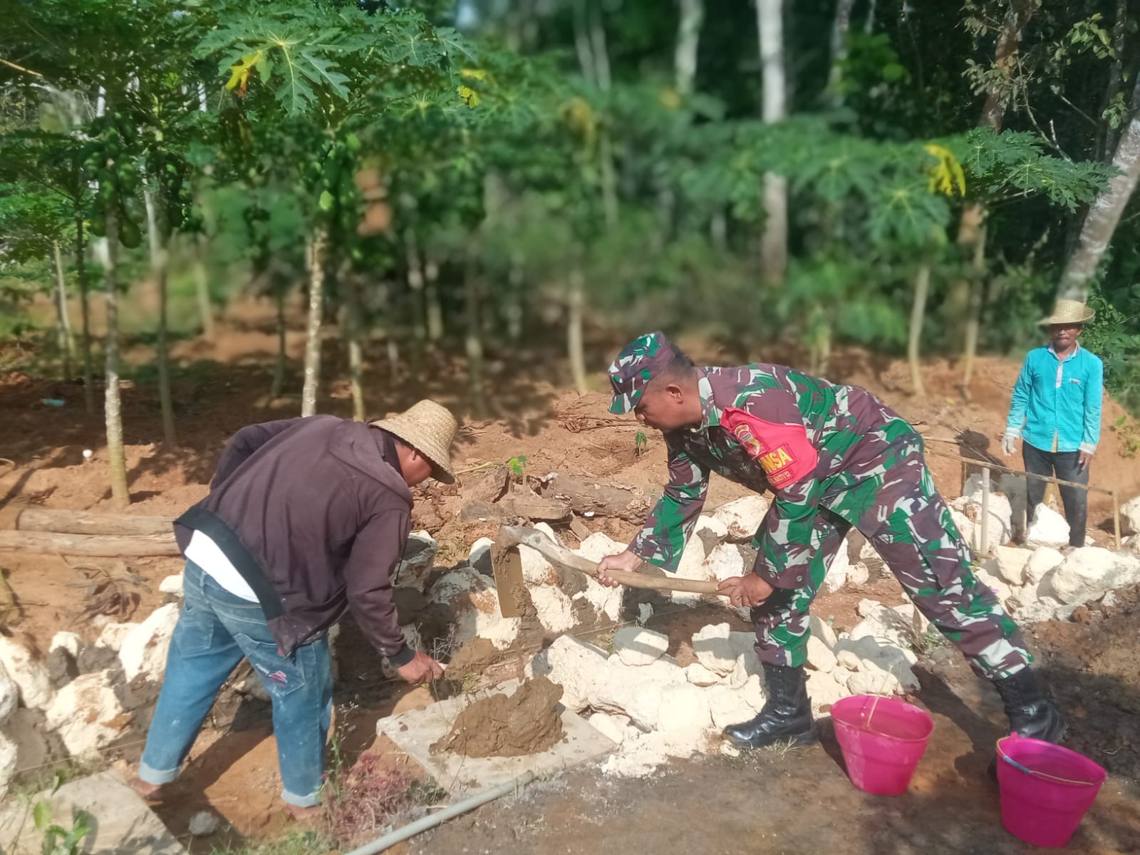 Sumenep – Anggota Koramil 0827/12 Dasuk, Sertu Adiyono, melaksanakan kegiatan karya bakti bersama warga Desa Kecer, Kecamatan Dasuk, Kabupaten Sumenep.