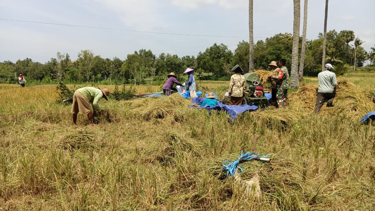 Kehadiran Babinsa di tengah sawah tidak hanya membantu mempercepat proses panen, tetapi juga memberikan semangat bagi para petani yang tengah bekerja sejak pagi hari.