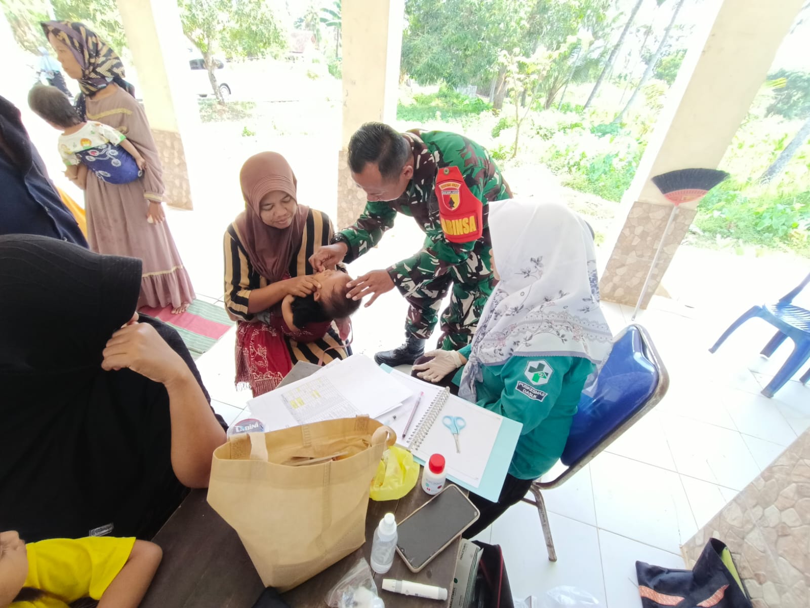 Pada Minggu (7/9/2025) pukul 09.30 WIB, Babinsa Koramil 0827/12 Dasuk, Koptu Putu Sumertadana, mendampingi kegiatan vaksinasi dan imunisasi Outbreak Response Immunization (ORI) campak di Desa Semaan, Kecamatan Dasuk, Kabupaten Sumenep.