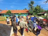 Tampak para Babinsa dan masyarakat bekerja bergotong royong membangun mushola yang menjadi kebanggaan masyarakat setempat.