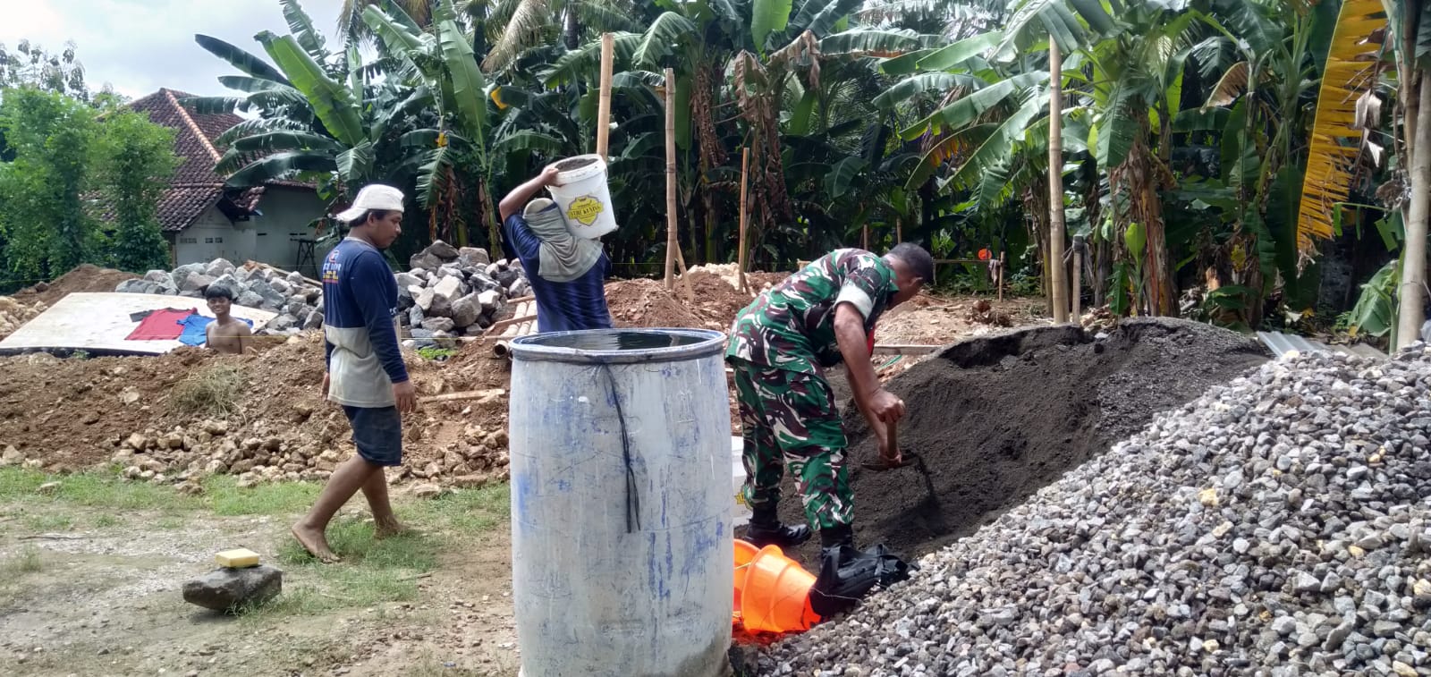 Kegiatan tersebut berlangsung dengan semangat gotong royong dan diharapkan dapat mempercepat proses pembangunan rumah warga.
