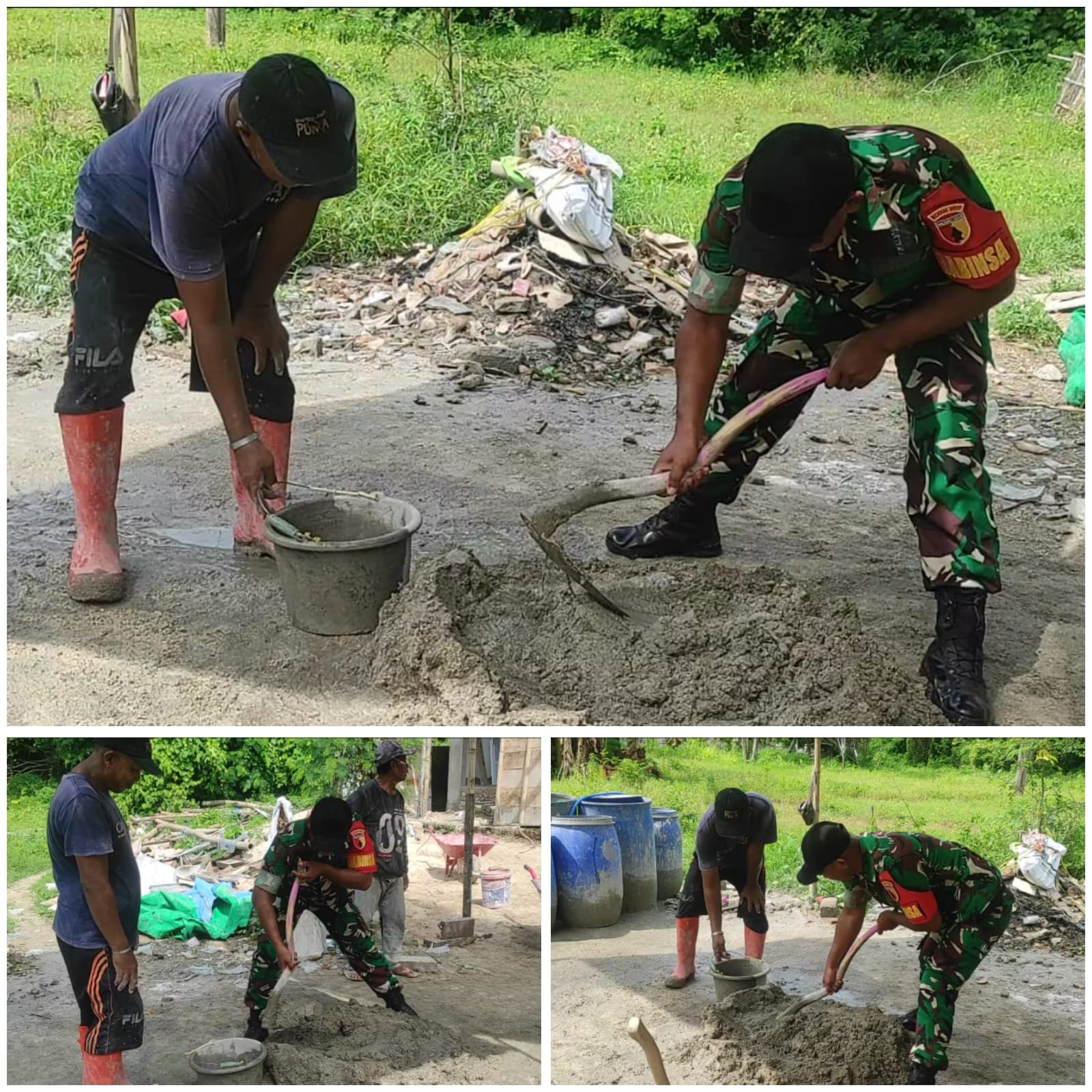 Kegiatan yang dimulai sekitar pukul 08.00 WIB tersebut difokuskan pada membantu proses pengadukan campuran semen dan pasir untuk pembangunan rumah milik Arifin, warga setempat. Kehadiran Babinsa di tengah masyarakat ini merupakan bagian dari upaya TNI AD melalui satuan teritorial dalam memperkuat kemanunggalan TNI dan rakyat.