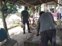 Sumenep, Jatim | suaranasionalnews.co.id – Guna terciptanya sinergitas TNI bersama rakyat, Babinsa Koramil 21/Raas Kodim 0827/Sumenep Serda Yudhi melaksanakan kegiatan karya bakti (karbak) membantu membangun rumah salah satu warga bersama masyarakat yang terletak di Desa Karopoh Kecamatan Raas Kabupaten Sumenep, Minggu (9/2/2025).