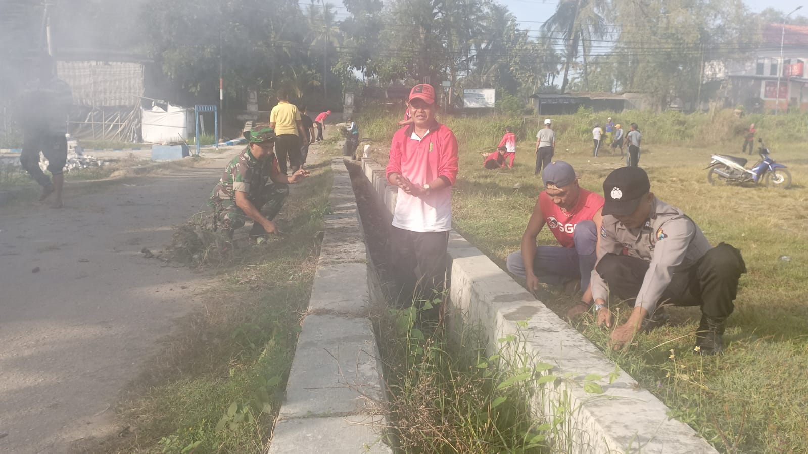 Kegiatan tersebut difokuskan pada pembersihan saluran drainase atau got di sekitar lapangan yang selama ini dipenuhi dengan sampah dan tumbuhan liar.