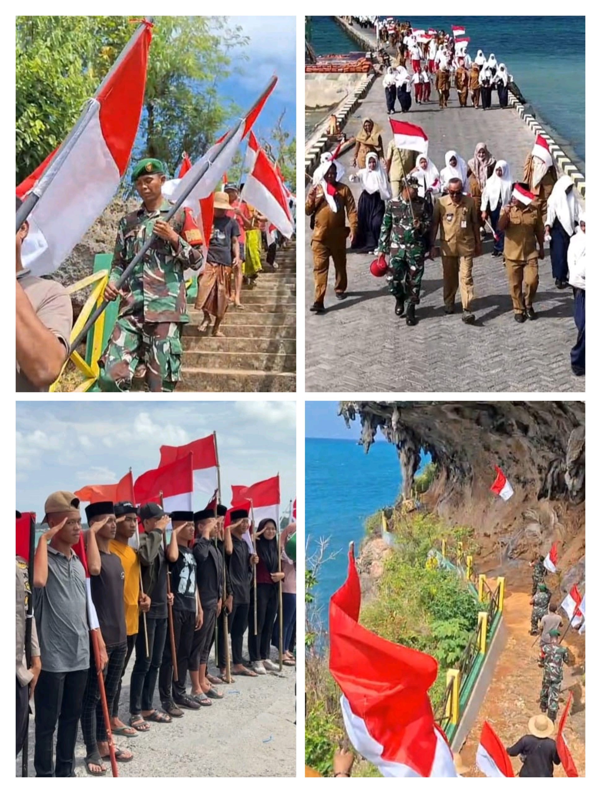SUMENEP – Momen istimewa mewarnai peringatan HUT ke-80 Republik Indonesia tahun 2025. Babinsa Kodim 0827/Sumenep bersama instansi terkait dan masyarakat secara serentak mengibarkan bendera Merah Putih di tiga kepulauan Kabupaten Sumenep, Minggu (17/8/2025).