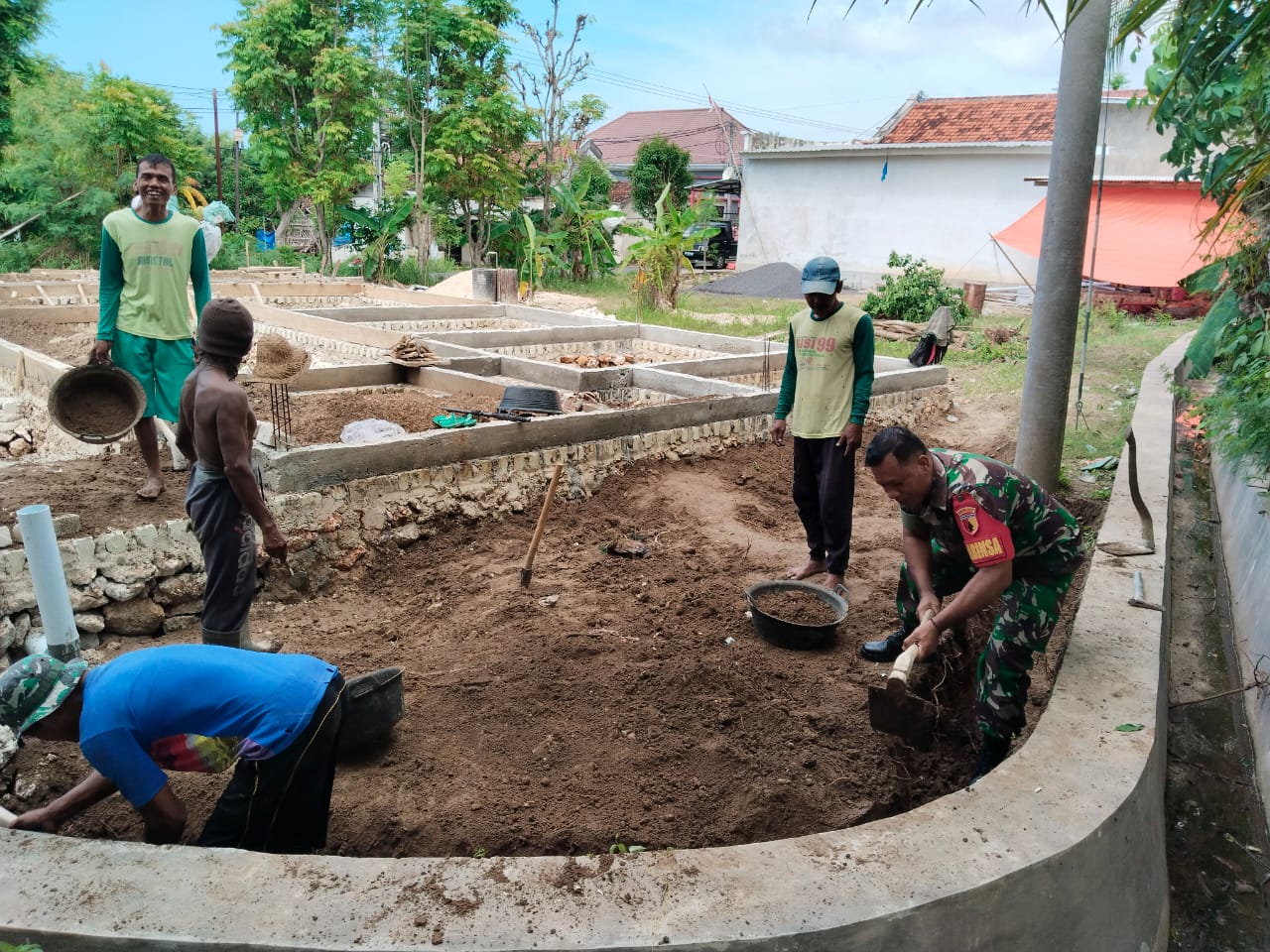 SUMENEP – Dalam rangka meningkatkan kedekatan dengan masyarakat dan mewujudkan kemanunggalan TNI dengan rakyat, Babinsa Koramil 04/Bluto, Serda Joko turun langsung membantu warga membangun pondasi rumah di Desa Sera Timur Kecamatan Bluto Kabupaten Sumenep, Kamis (3/7/2025).