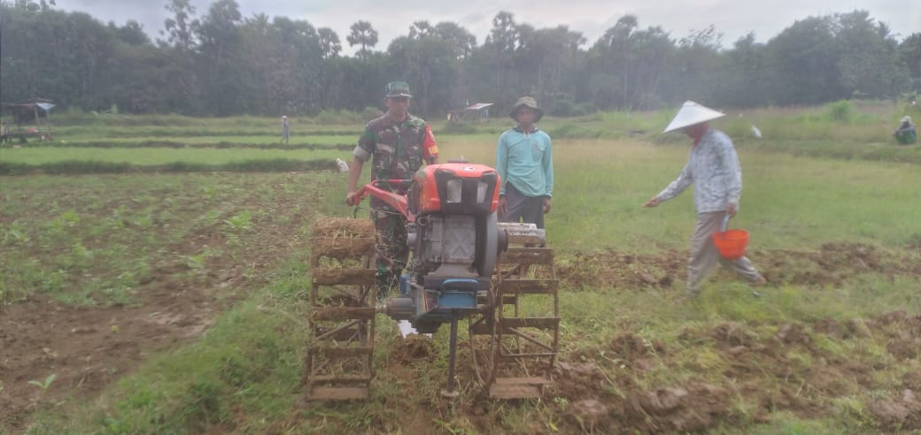 “Kami hadir tidak hanya dalam kegiatan keamanan saja tetapi juga membantu masyarakat secara langsung, Salah satunya melalui pendampingan pertanian, seperti hari ini kami turut membajak lahan milik warga untuk mempersiapkan tanam jagung,” ujar Serka Huda.