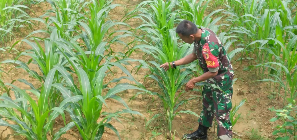 Kegiatan ini merupakan bentuk kepedulian TNI AD terhadap para petani dan pertanian rakyat. Dalam pelaksanaannya, Sertu Rahmat bersama petani setempat memeriksa langsung kondisi tanaman jagung di lahan pertanian, guna mengantisipasi serangan hama yang dapat merugikan petani.