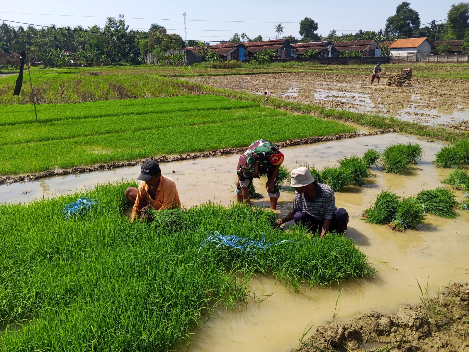 Pendampingan ini merupakan bagian dari tugas pembinaan teritorial Babinsa dalam mendukung ketahanan pangan di wilayah binaan. Dalam kegiatan tersebut, Serka Rasul turun langsung ke sawah bersama para petani untuk membantu proses pencabutan benih padi yang akan dipindahkan ke lahan tanam.