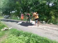 “Semoga dalam kerja bakti ini, kehadiran saya sebagai Babinsa bisa membantu meringankan tugas warga dalam pengaspalan jalan agar cepat selesai dan jalan ini bisa segera dilalui,” ucap Babinsa.