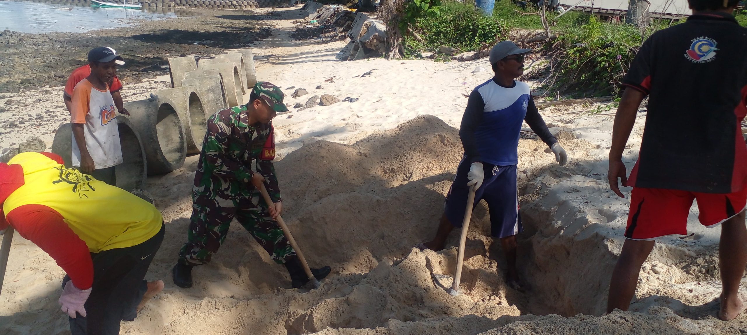 Di Lokasi Karya Bakti Sertu Muharto mengatakan, kegiatan ini merupakan bentuk kepedulian babinsa sebagai prajurit teritorial terhadap lingkungan dan juga menopang pembangunan yang ada di wilayah binaan, dan salah satu cara untuk menjalin hubungan dan kerja sama antara TNI dengan rakyat.