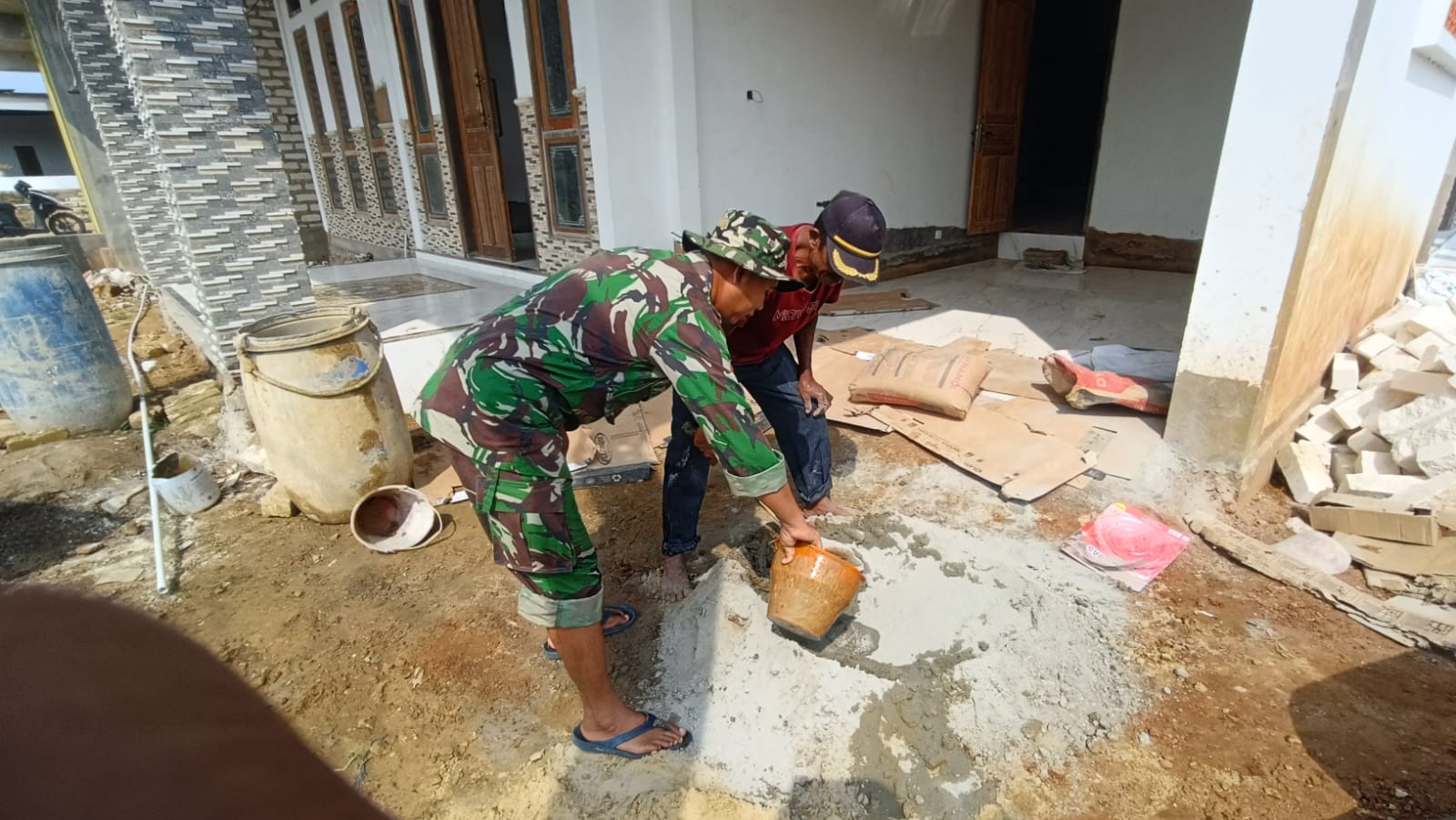 Dalam kegiatan tersebut, Koptu Benny membantu mencampur semen dan memasang keramik rumah milik salah satu warga yang sedang melakukan renovasi. Kehadiran Babinsa ini disambut hangat oleh warga sekitar, yang merasa terbantu dengan kerja sama dan semangat gotong royong yang ditunjukkan.