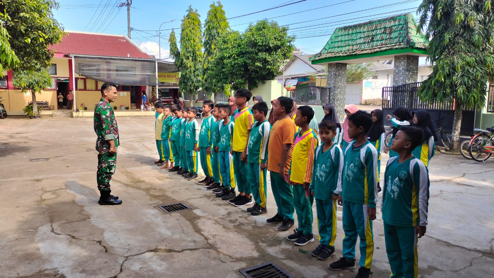 “Dengan adanya latihan PBB ini diharapkan akan tertanam jiwa kedisiplinan pada siswa-siswi Sekolah Dasar sejak dini, karena itu merupakan kunci keberhasilan dalam meraih cita cita yg di dambakan, salah satunya disiplin, bisa dalam bentuk disiplin waktu dan disiplin belajar,”Ungkap Serda Kholis.
