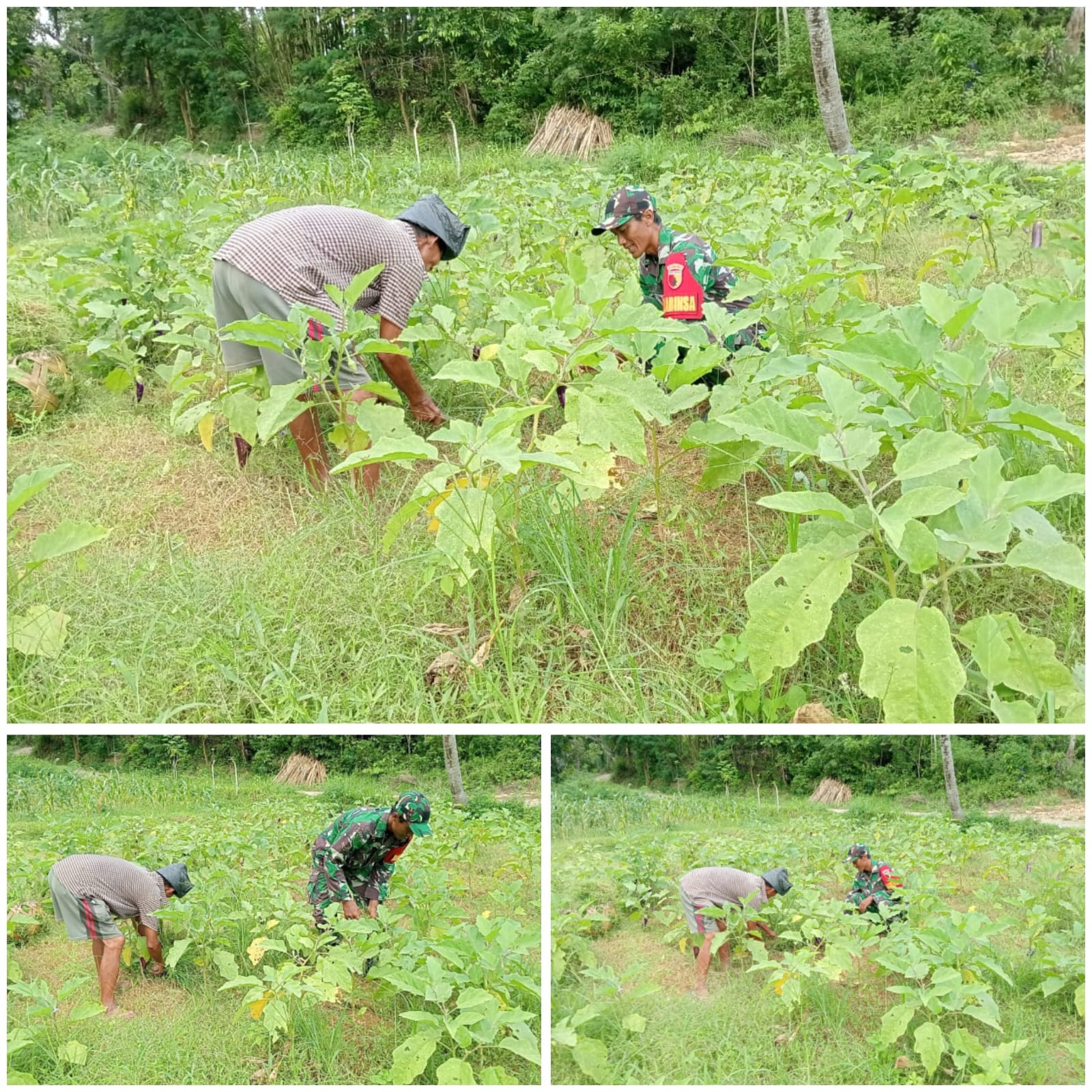 SUMENEP – Wujud nyata kepedulian TNI terhadap ketahanan pangan terus ditunjukkan oleh Bintara Pembina Desa (Babinsa). Babinsa Koramil 0827/12/Dasuk, Sertu Antok, melaksanakan kegiatan pendampingan pertanian dengan membantu petani mencabut rumput liar pada tanaman terong di Desa Beringin, Kecamatan Dasuk, Kabupaten Sumenep, Madura, Jawa Timur, Kamis (15/01/2026).