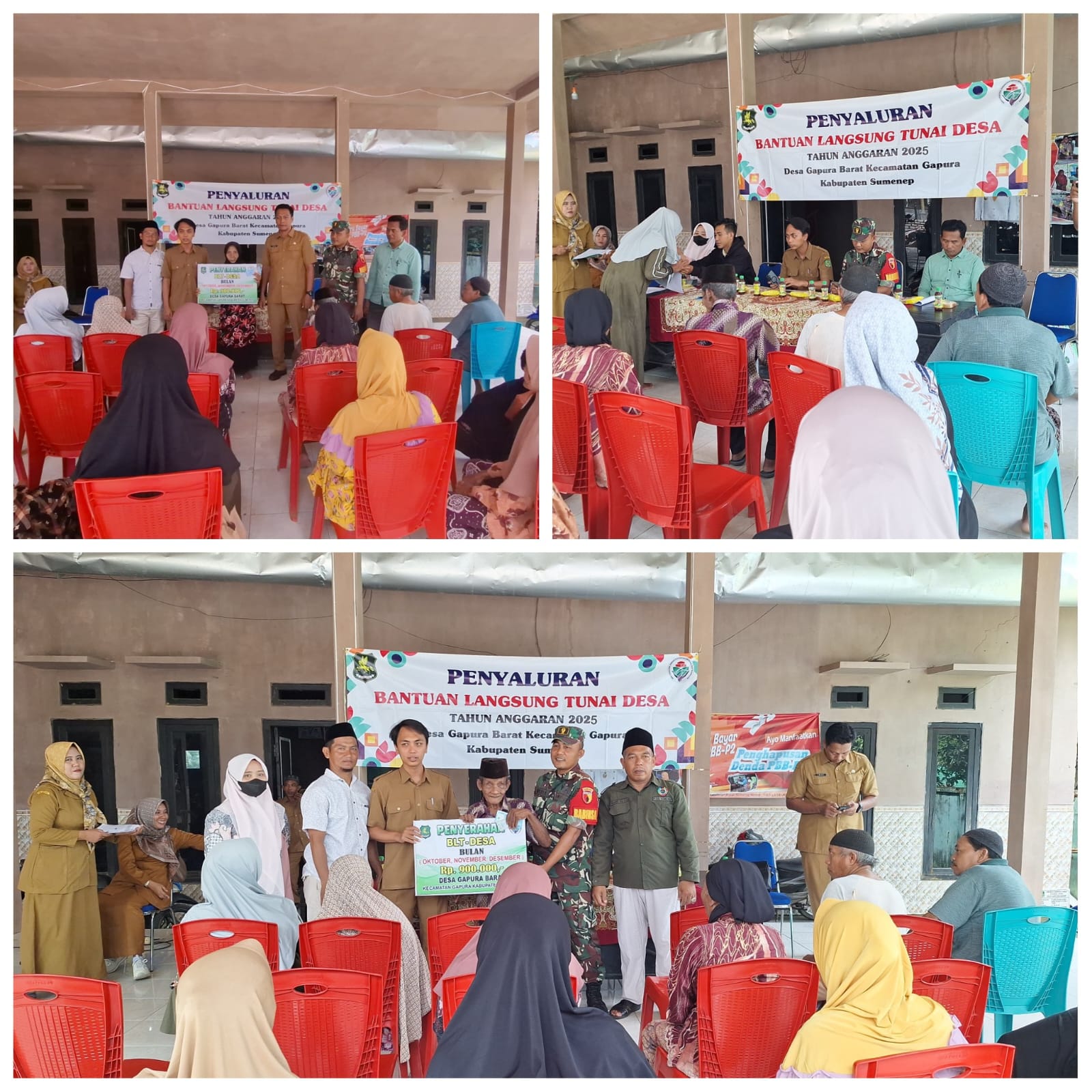 SUMENEP – Babinsa Koramil 0827/16 Gapura, Serka Mofiq melaksanakan pendampingan dalam kegiatan penyaluran Bantuan Langsung Tunai Dana Desa (BLT DD) yang digelar di Desa Gapura, Kecamatan Gapura, Kabupaten Sumenep, pada Selasa (2/12/2025).