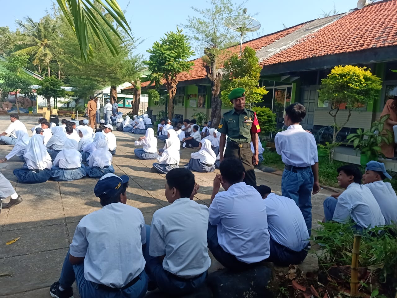 SUMENEP — Babinsa Koramil 16/Gapura, Serka M. Rasul, memberikan pembekalan wawasan kebangsaan kepada para siswa-siswi di SMA Negeri 1 Gapura, Kabupaten Sumenep, Madura, Jawa Timur, pada Selasa (21/10/2025).