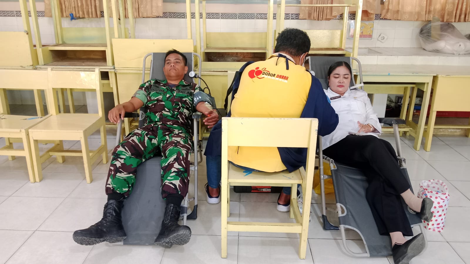 SUMENEP – Dalam rangka mendukung kegiatan kemanusiaan, Babinsa Koramil 0827/16 Gapura, Serda Ahmad Suhartono, melaksanakan donor darah yang diselenggarakan di SMA 1 Gapura, Kabupaten Sumenep. Jum’at (1/8/2025).