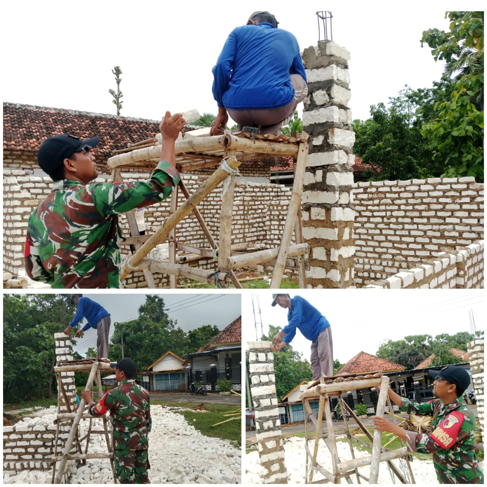 SUMENEP – Babinsa Koramil 0827/17 Dungkek, Kopda Agung, melaksanakan kegiatan Karya Bakti dengan membantu warga Desa Bunpinang dalam proses pemasangan batu bata untuk pembangunan rumah pada Sabtu (6/12/2025).