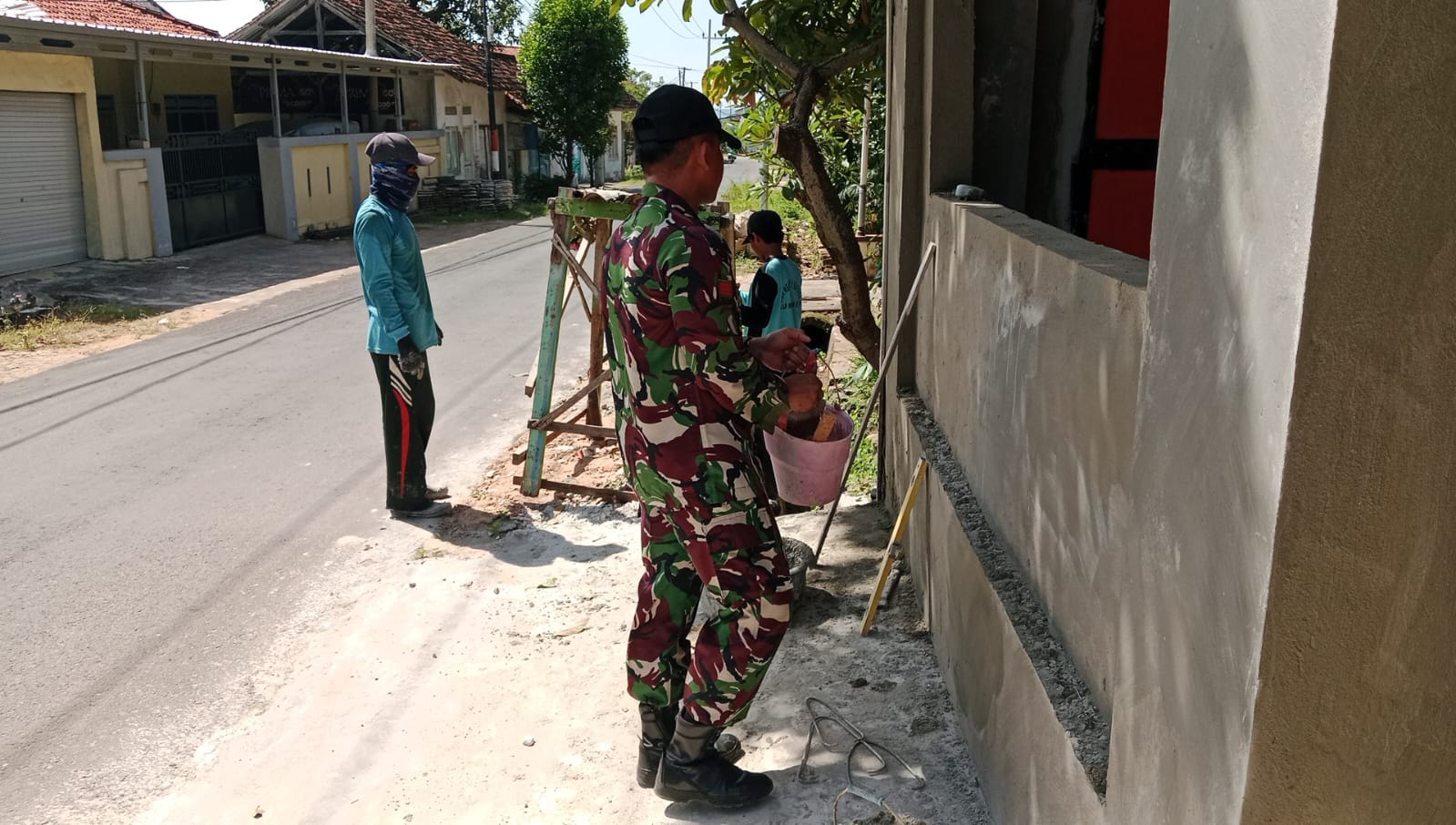 SUMENEP – Kepedulian terhadap masyarakat terus ditunjukkan oleh Babinsa Koramil 0827/17 Dungkek. Praka Moh. Fathur turun langsung membantu warga melaksanakan pelamir dinding rumah di Desa Dungkek, Kecamatan Dungkek, Kabupaten Sumenep, Madura, Jawa Timur, pada Jum’at (28/3/2026).
