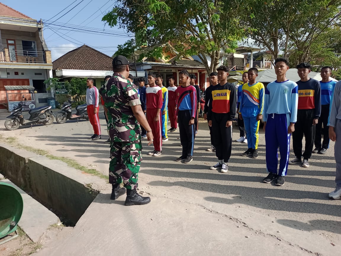 SUMENEP – Dalam rangka menyambut Hari Ulang Tahun (HUT) ke 80 Kemerdekaan Republik Indonesia, Babinsa Koramil 0827/18 Kangean, Serka Abdulrahman melatih pasukan pengibar bendera pusaka (Paskibraka) tingkat SMA di Kecamatan Arjasa Kabupaten Sumenep, Senin (11/08/2025).