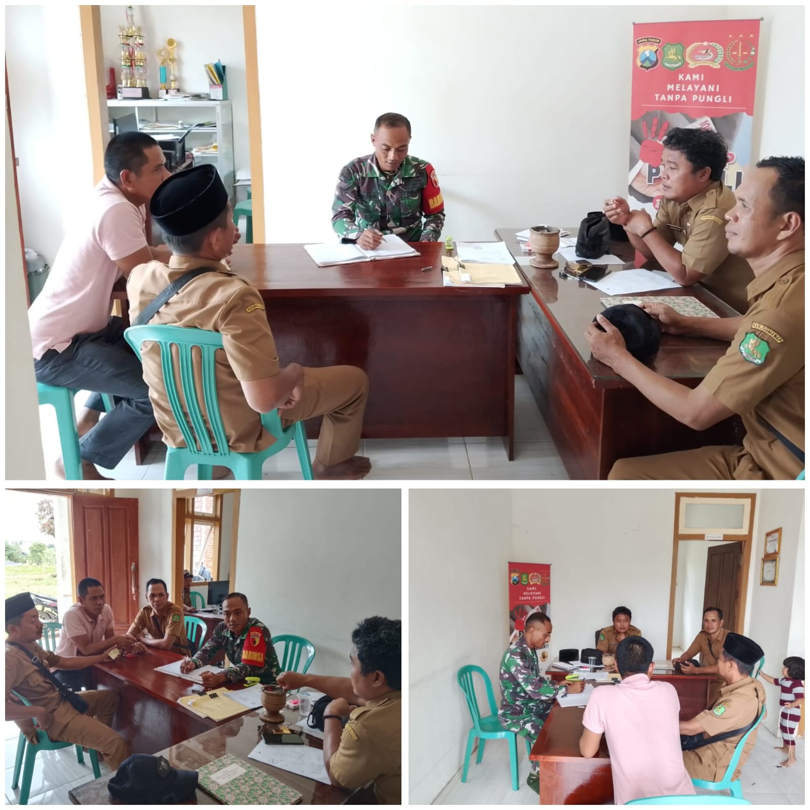 Dalam kesempatan tersebut, Serda Agung menyampaikan pentingnya peran perangkat desa dalam menyampaikan informasi perkembangan situasi di wilayah, termasuk permasalahan sosial yang ada di tengah masyarakat. Ia juga mengajak seluruh perangkat desa untuk bersama-sama menjaga persatuan dan kerukunan warga.
