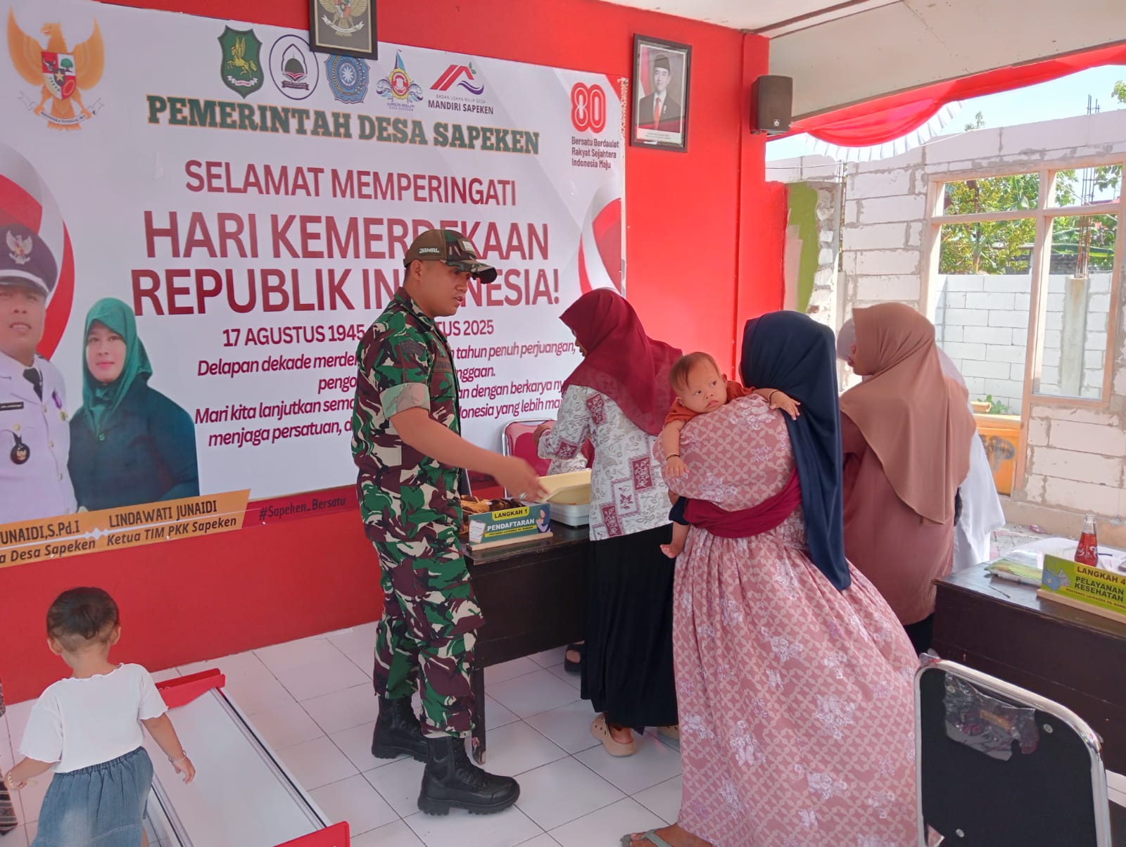 SUMENEP – Babinsa Koramil 19/Sapeken, Serda Jamaluddin, melaksanakan pendampingan kegiatan Pos Pelayanan Terpadu (Posyandu) yang bertempat di Desa Sesel Kecamatan Sapeken Kabupaten Sumenep, pada Selasa (9/9/2025).