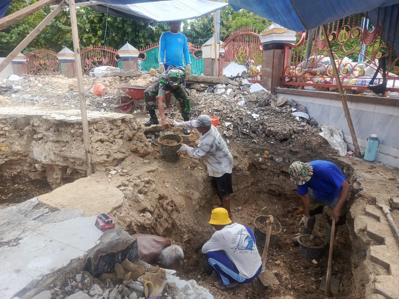 Kegiatan tersebut merupakan wujud nyata kemanunggalan TNI dengan rakyat. Dengan penuh semangat, Koptu Anton turun langsung membantu warga mengangkut bahan bangunan, mencampur adukan semen, serta membantu pengecoran pondasi masjid.