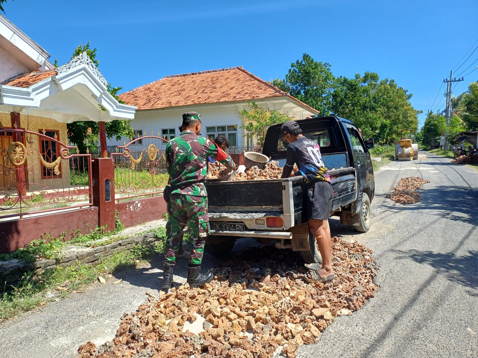“Sebagai Babinsa, saya berkewajiban mendukung dan membantu masyarakat dalam menjaga kondisi lingkungan, termasuk memperbaiki sarana dan prasarana jalan yang rusak. Semoga kegiatan ini bermanfaat dan menjadi contoh kebersamaan dalam membangun desa,” ujar Praka Danny.