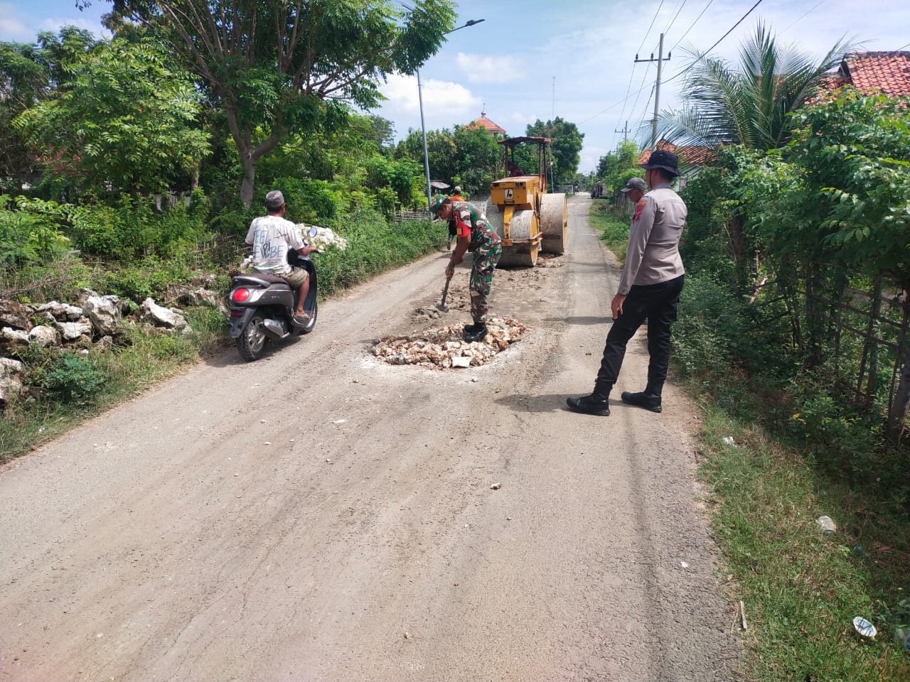 SUMENEP – Wujud nyata kemanunggalan TNI dan rakyat kembali ditunjukkan oleh Babinsa Koramil 21/Raas, Serka Hartono, yang turut serta dalam kegiatan karya bakti pengecoran jalan bersama warga Desa Kropoh, Kecamatan Raas, Kabupaten Sumenep, pada Minggu (3/08/2025).