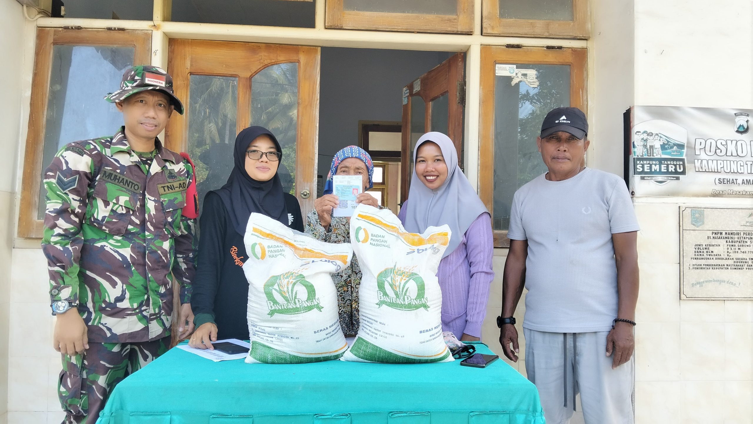SUMENEP – Dalam rangka memastikan pendistribusian bantuan tepat sasaran, Babinsa Koramil 22/Masalembu Kodim 0827/Sumenep Sertu Muhanto melaksanakan pendampingan penyaluran bantuan beras di Desa Masakambing, Kecamatan Masalembu, Kabupaten Sumenep. Minggu (27/07/2025).