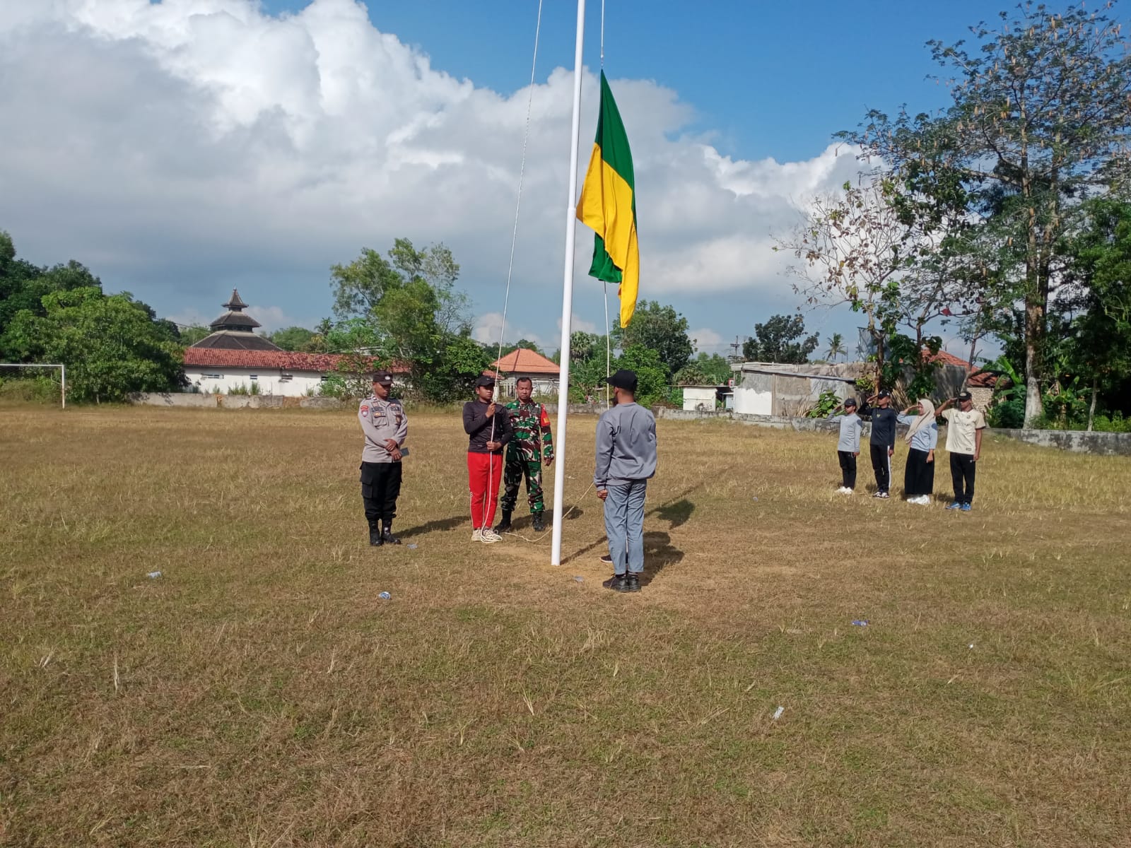 SUMENEP – Personel Babinsa Koramil 0827/12 Dasuk, Koptu Putu, memberikan pelatihan kepada anggota Pasukan Pengibar Bendera Pusaka (Paskibraka) Kecamatan Dasuk. Kegiatan berlangsung di lapangan Desa Jalbudan, Kecamatan Dasuk, Kabupaten Sumenep. Jumat (8/8/2025).