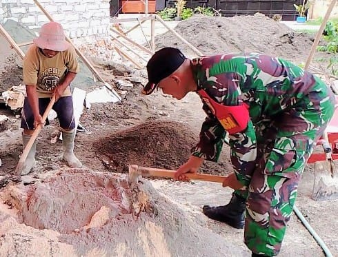 SUMENEP – Peran aktif aparat teritorial kembali ditunjukkan Babinsa Koramil 0827/12 Dasuk, Serda Agus Riyanto, yang terjun langsung membantu warga binaannya dalam pembangunan rumah di Desa Dasuk Barat, Kecamatan Dasuk, Kamis (2/4/2026).