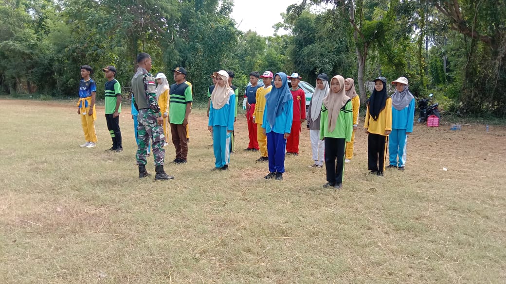 SUMENEP – Dalam rangka mempersiapkan upacara peringatan Hari Ulang Tahun ke-80 Kemerdekaan Republik Indonesia, Babinsa Koramil 17/Dungkek Kopda Yeyen Mei melatih Pasukan Pengibar Bendera Pusaka (Paskibraka) tingkat kecamatan di lapangan Desa Dungkek, Kabupaten Sumenep. Kamis (14/08/2025).
