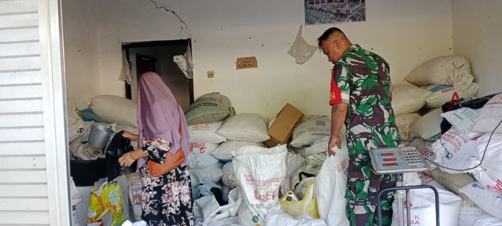 Dalam pengecekan tersebut, Babinsa berkoordinasi dengan perangkat desa dan pemilik kios beras setempat untuk memantau jumlah persediaan, harga jual, serta kelancaran distribusi beras di masyarakat.