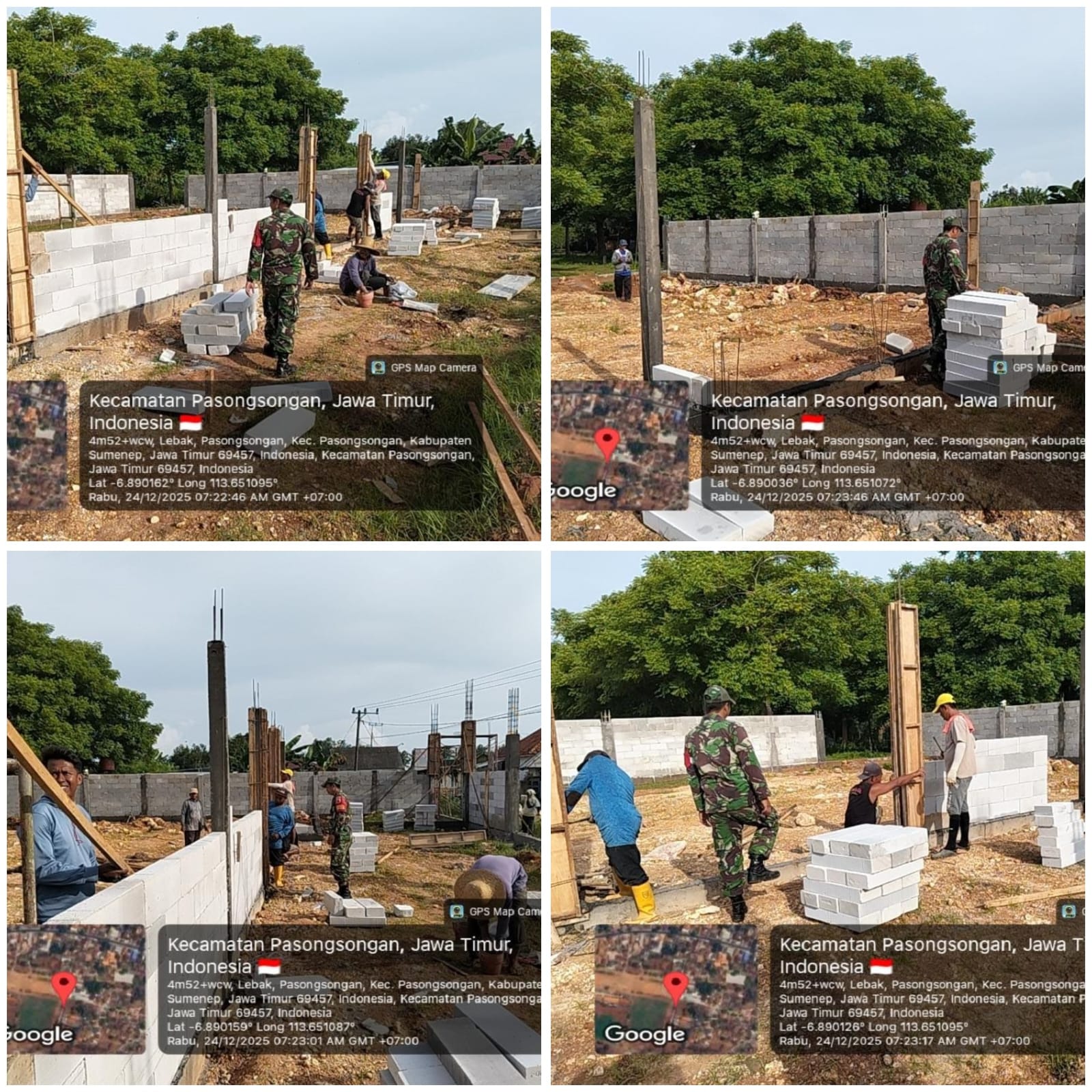 Dalam kegiatan tersebut, Babinsa Koramil 0827/11 Pasongsongan Kopda Domairi Efendi terlihat tidak hanya melakukan pengawasan, tetapi juga ikut membantu pekerjaan bersama para tukang.