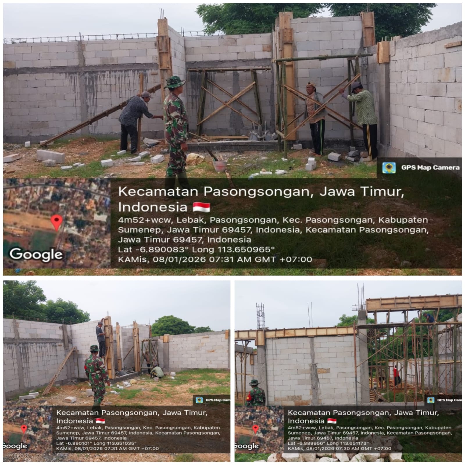 SUMENEP– Babinsa Koramil 0827/11 Pasongsongan, Kabupaten Sumenep, Jawa Timur, melakukan pengawasan langsung terhadap progres pembangunan Koperasi Desa/Kelurahan Merah Putih yang berlokasi di Dusun Morasen, Desa Pasongsongan, Kecamatan Pasongsongan, Kamis (8/1/2026).