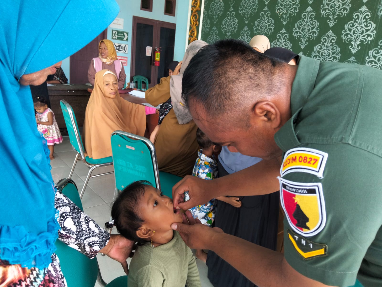 SUMENEP – Dalam rangka mendukung program kesehatan nasional, Babinsa Koramil 0827/13 Rubaru, Serda Hainurrahman, turun langsung mendampingi pelaksanaan imunisasi campak bagi anak-anak di Desa Mandala, Kecamatan Rubaru, Kabupaten Sumenep, Kamis (9/10/2025).